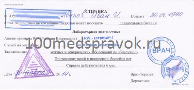 Медицинская справка в бассейн ребенку